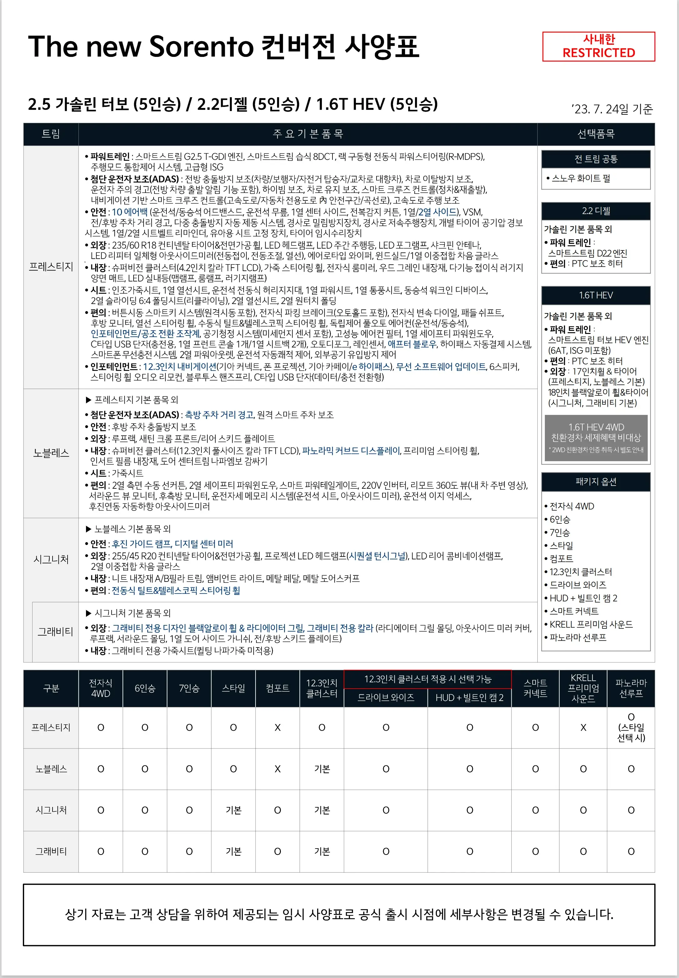 기존 계약 고객을 대상으로 쏘렌토 페이스피프트는 컨버젼모델을 먼저 공개했는데요 가격은 안 나왔고요